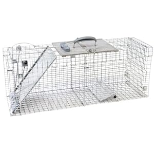Ideal for trapping raccoons, stray cats, groundhogs (woodchucks), opossums, armadillos, and similar-size nuisance animals. Collapsible Havahart traps have a Space Saving Design for easy storage. When ready to use, just lift the handle and the trap pops into place! Havahart Easy Set traps are the new standard in live animal traps. The patent pending design is easy to set, easy to release. Perfect for first time trappers, one simple move and the traps are set! Constructed of sturdy wire mesh with steel reinforcements for long life, and galvanized for maximum resistance to rust and corrosion. Mesh openings are smaller than competing traps of comparable size to prevent escapes and stolen bait. Spring loaded door and sensitive trigger ensure quick, secure captures. Solid door and handle guard protect user during transportation, while smoothed internal edges protect and prevent injuries to animals. Made in the USA.