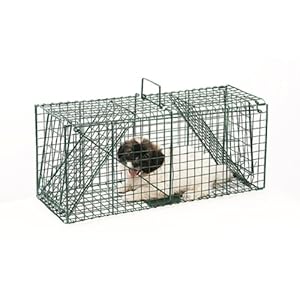 If you are in the market for an animal trap, stop looking! The Pet Trex Dual Door trap was developed based on customer feedback from their best selling "Ultimate Critter Catcher". The result was an innovative dual door design with beefier construction that will make catching Raccoons, Stray Cats, Woodchucks, Groundhogs, Armadillos, skunks, and other similar size animals a breeze. Pet Trex is notorious for their innovative designs and their eco-friendly solutions. Instead of killing animals, homeowners and gardeners can capture and relocate pests without harming them. This is trap is safer and easier to use than almost all of the other live animal cages on the market. Dare to compare!FEATURES: One premium green trap is included All steel cage construction--Made of heavy-duty tubular steel with a green powder-coat finish for extra durability Large trap measures roughly: 26 1/4" long x 9 1/2" wide x 12 1/2" high Great for trapping raccoons, cats, skunks, squirrels, rabbits, muskrats and more! Spring loaded doors on both ends of the trap Pop-up carry handle for easy portable transport High Tensile Wire Mesh Makes Trap More Durable Without Making It Heavier Animal Friendly Design: Rolled metal edges and snug fitting doors eliminate sharp surfaces ; gaps that could harm an animal 1 Year limited lifetime warranty against defects